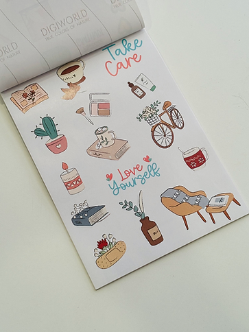 15-Sheet Sticker Book – A collection of versatile stickers featuring motivational quotes, affirmations, icons, and decorative designs to enhance and personalize your journaling pages.